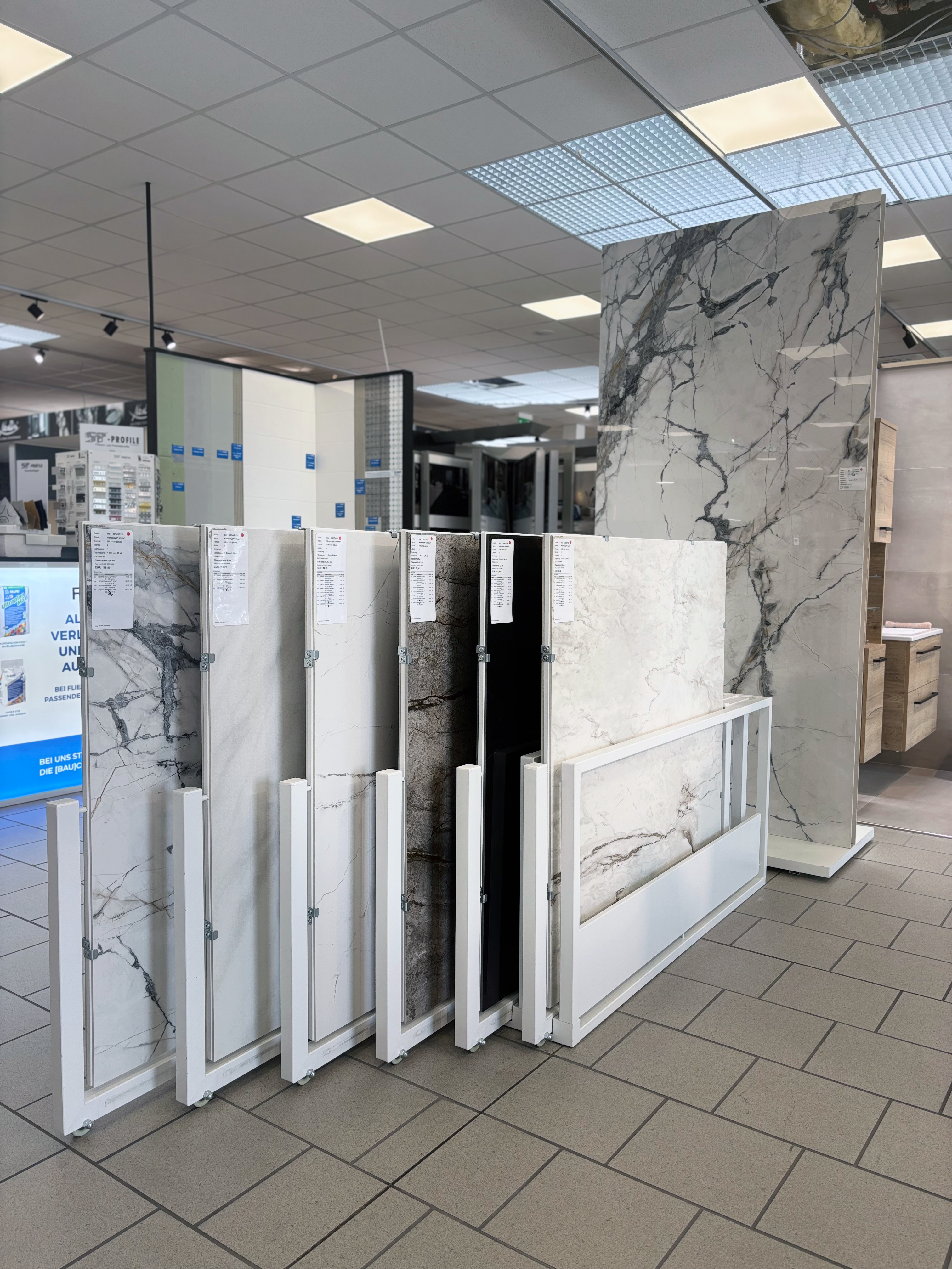 Entdecke unsere große Auswahl an Fliesen in den verschiedensten Optiken, Stilen, Farben und Formaten. Ob Stein-, Marmor-, Beton- oder Holzoptik, Dekore, Mosaike oder sogar Fliesen im Tapetenlook
