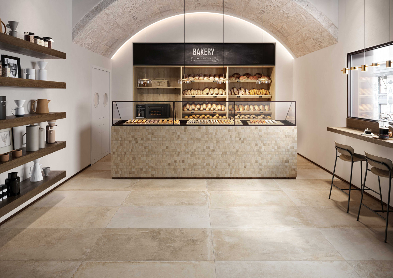 Gewerbliche Innenräume: Ob in Restaurants, Hotels oder Büros – Feinsteinzeug beeindruckt mit seiner Designvielfalt und Strapazierfähigkeit und schafft ein einzigartiges, abgestimmtes Ambiente